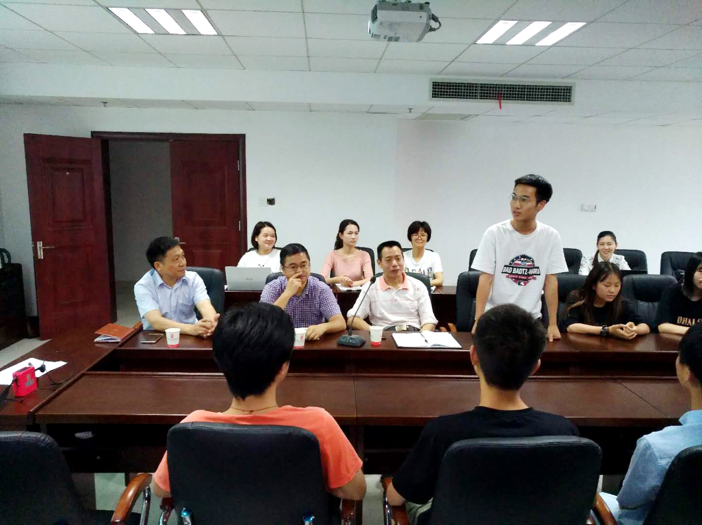根据米兰买球党委《2019年学生思想政治教育“五个一”工程实施方案》安排,6月13日下午,米兰买球党委书记张格林亲临对口联系的建筑装饰系善美抖音社,现场指导交流社团活动。活动由思政教研室教师暨善美抖音社指导教师张佳颖主持,党政办主任肖炎坤、建筑装饰系主任沈朝晖、思政教研室全体教师和善美抖音社全体成员参加活动。