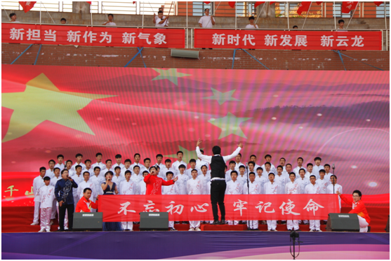 比赛现场,《我爱你中国》《不忘初心》《国家》《在阳光灿烂下》等脍炙人口的经典歌曲先后唱响。熟悉的旋律,深情的演唱,展现了新中国走过70年的光辉历程。台上,参赛师生满怀豪情、意气风发,以饱满的热情、嘹亮的歌声,唱响新时代的主旋律,展示青春风采和飞扬活力。
