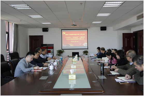 11月14日下午,米兰买球行政二党支部在行政楼九楼会议室召开“不忘初心、牢记使命”主题教育对照党章党规找差距专题会议。市委主题教育第一指导组副组长黄毅、成员刘亭到会指导。支部全体党员参加了本次专题会议,会议由支部书记曹卫华主持。