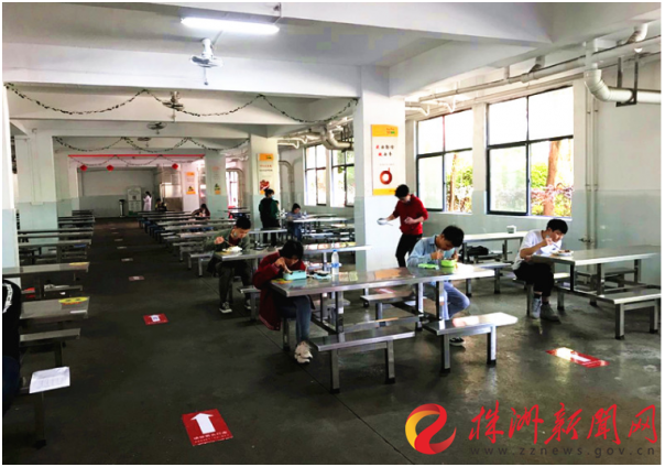 ▲ 学生在固定餐桌,错时、有序就餐。(通讯员 供图)