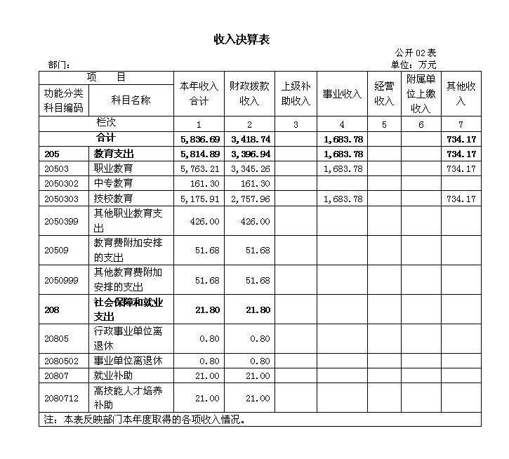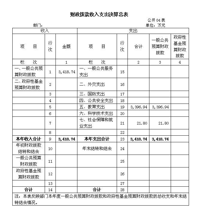 部门收支预算总表