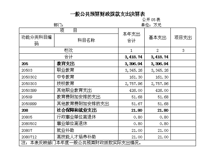 2、年度一般公共财政预算财政拨款支出情况。