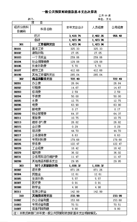 ①基本支出3418.74万元;②项目支出0。