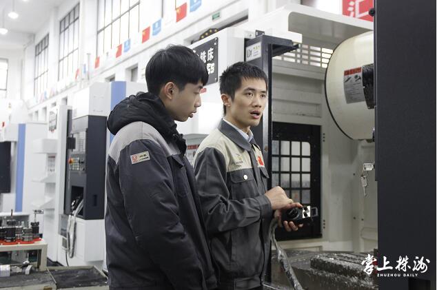 戴着护目镜、穿着工作服和劳保鞋,32岁的现代制造系教师谭志明上午8点准时出现在实训基地,开始一天的工作。在同事眼中,小谭年纪不大,却很沉稳。谭志明笑着说,“越是精细的活,心就越要沉下来。”