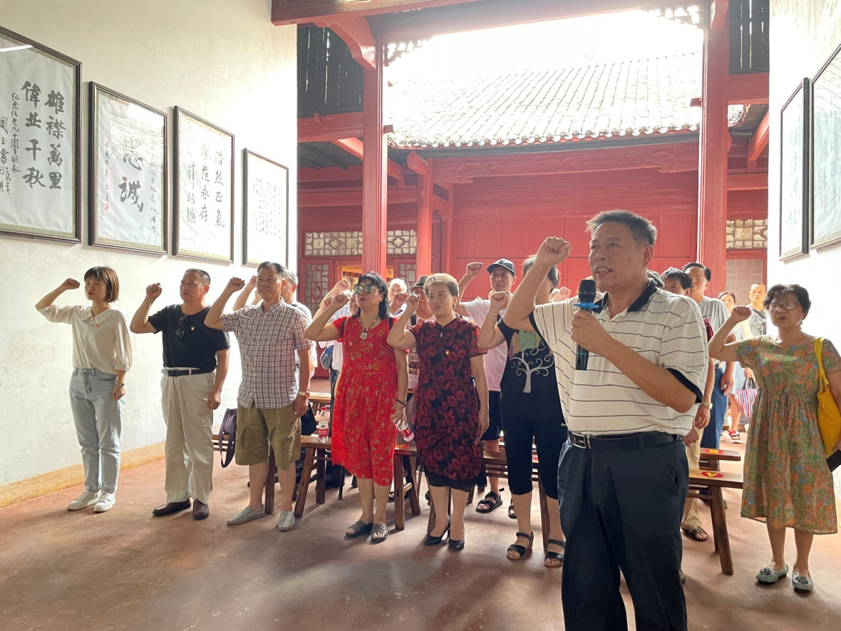 在谭震林生平业绩陈列室里,讲解员结合实物及图片展示向大家详细讲解了谭震林生平事迹,一节节珍贵的文字,一张张泛旧的照片,一段段模糊的影像,再现了谭震林同志在中国革命各个历史时期的丰功伟绩和重大贡献。共产党人坚定信念、不畏牺牲、百折不挠、前赴后继的大无畏精神,令大家深受感染和震撼。