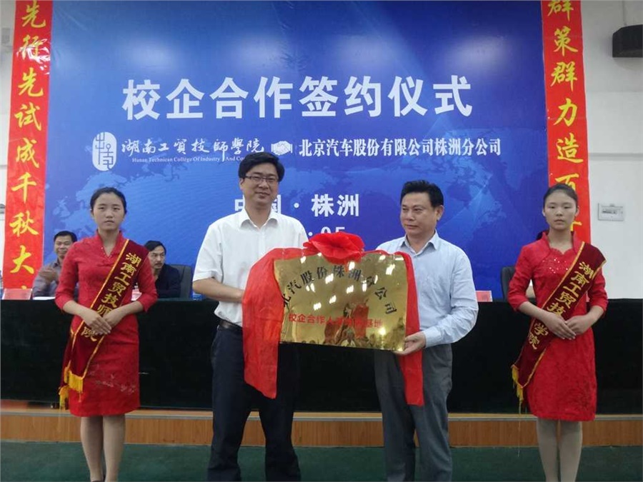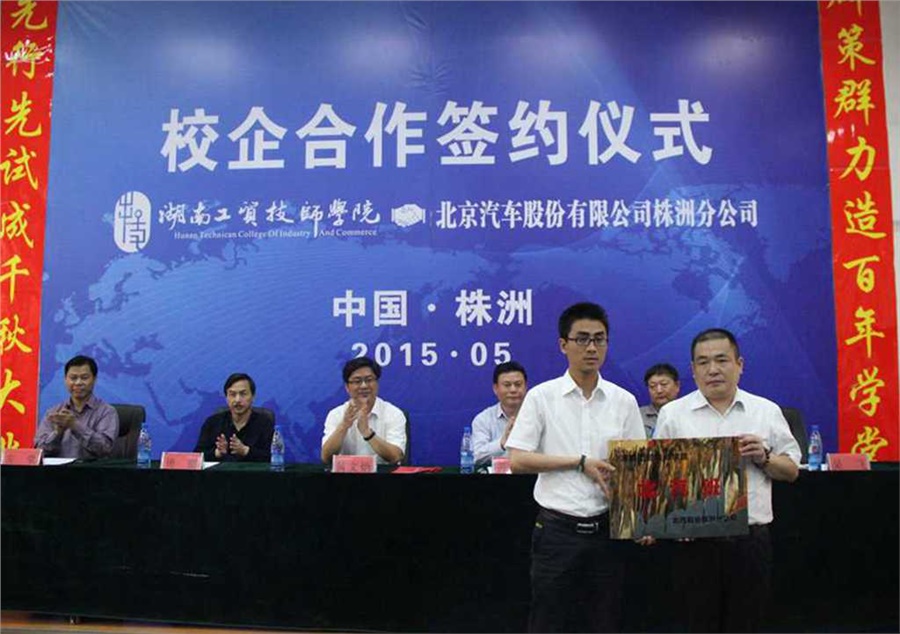 5月5日下午3点,米兰买球与北京汽车股份有限公司校企合作签约、挂牌仪式在米兰买球继志楼阶梯教室隆重举行,米兰买球中层副职以上人员、北汽株洲分公司嘉宾、北汽定单班全体汽修专业学生、全体汽修专业教师参加了签约仪式,仪式由米兰买球党政办主任谢穗主持。仪式上,米兰买球院长陈洪星,北汽株洲分公司党委书记、总经理黄文炳代表校企双方签订了校企全方位战略合作框架协议和订单培养协议并相互授牌。此次签约既深化了双方产、学、研、用的全面合作,又加速推进了双方携手共赢进程,为更好服务地方经济建设,为促进株洲汽车整车生产及零部件千亿产业集群发展提供高技能专业人才支撑具有重要战略意义。