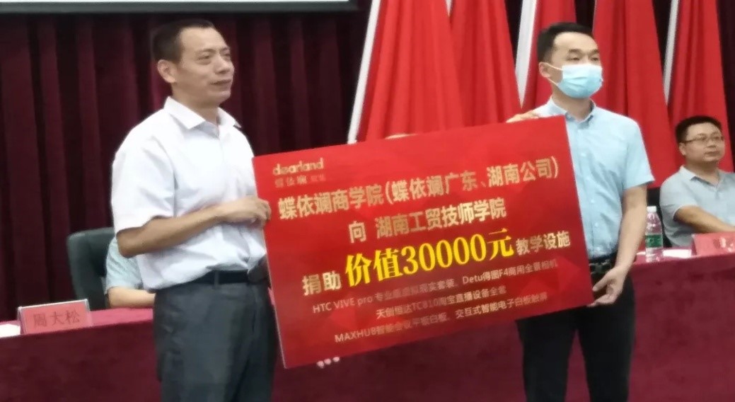 典礼伊始,企业代表蝶依斓品牌总监周大松介绍了自2019年12月以来湖南工贸技师“蝶依斓软装班”开班情况。随后由蝶依斓人事主管杨丽宣布考核成绩、获奖名单,并由出席的领导嘉宾向获奖的同学们颁发证书及奖金。蝶依斓董事长、商米兰买球院长周石旺向米兰买球捐助了价值3万元教学设备。最后,皮步安副院长代表米兰买球讲话并表示将以此次培训班的成功举办为契机,进一步深化合作,拓展合作思路,推动校企合作不断结出更加丰硕的果实。