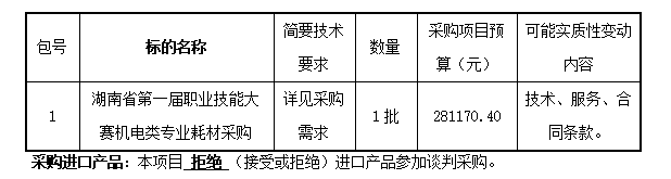 1、采购项目名称:湖南省第一届职业技能大赛机电类专业耗材采购