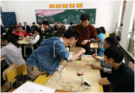听完介绍后,客人们饶有兴趣地来到装饰工程系教学楼参观,重点考察了室内设计样版间,对我系室内设计专业实训教学赞不绝口。然后在第三节课时,观摩了阳季华老师“室内照明的控制”公开课。阳老师采用理实一体的教学方法,分组操作竞赛,人人参与,让学生在模拟仿真条件与具体实践中掌握专业的基本技能,力求教学效果最大化,给郴州技师米兰买球的客人们留下了深刻的印象。