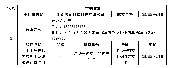 受米兰买球的委托,湖南中卓工程项目管理有限公司代理机构对米兰买球热水系统建设运营项目采购进行公开招标,经评标委员会评审,采购人确认,现将中标信息公告如下: