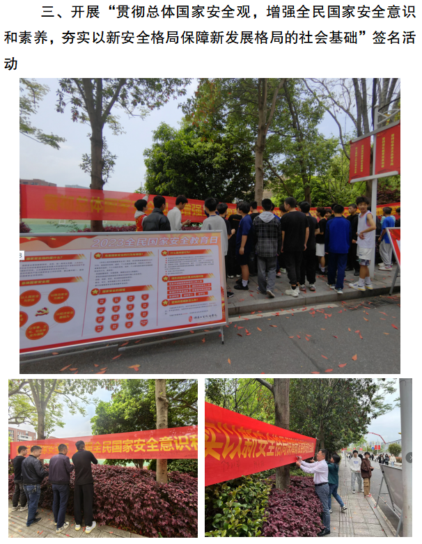 围绕“贯彻总体国家安全观,增强全民国家安全意识和素养,夯实以新安全格局保障新发展格局的社会基础”这一宣传主题,成立了国家安全普法宣传教育活动领导小组,制定了活动方案,加强了对活动的组织和领导。要求各部门及全体教职工必须提高政治站位,深刻认识加强国家安全法治宣传教育的重要性,深入学习宣传贯彻二十大习近平总书记关于总体国家安全观的重要论述以及习近平法治思想的重大意义、丰富内涵、精神实质和实践要求,进一步增强国家安全意识,提高防范抵御国家安全风险的能力。