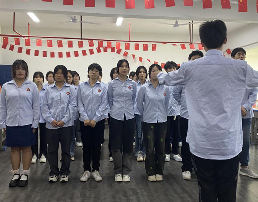 在当天的座谈交流中,师生交流会气氛活跃,同学表示这次的思想政治课非常难忘,感悟深刻,将进一步坚定信念,争做有理想、敢担当、能吃苦、肯奋斗的新时代好青年,学好技能,倚技报国。当天的活动中,电商技师2201班刘许成同学为大家表演了武术——《精忠报国》,动作如行云流水,一招一式铿锵有力,现场掌声不断。电商技师2201班全体同学合唱了歌曲《歌唱祖国》,他们歌声嘹亮,每一个音符都饱含对祖国的爱和自豪。(经贸物流系 周家供稿)