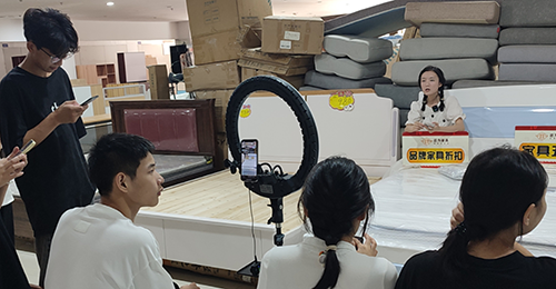 学生在匠为家具门店进行直播实操