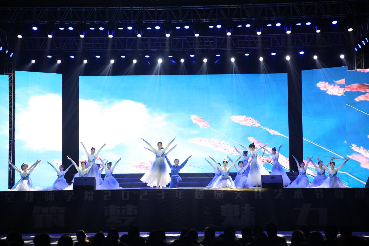 晚会在开场舞《魅力航空》的表演中拉开了序幕,演员动感而激情的舞姿燃起了在场观众的热情;紧接着各种精彩节目轮番登场,魅力四射;《清廉·风雅颂》给观众们充分展示了中华传统文化的博大精深和独特魅力;满载青春气息的《栀子花开》寓意着美好的校园时光;说唱《漂向远方》和女子群舞《天空随想》把晚会推向高潮,同学们犹如向往自由的鸟,挥洒着激情与青春,晚会在全体团委老师的歌声和无人机表演中圆满结束,本次晚会在网络平台全程同步直播,直播最高观看量达到4万+。