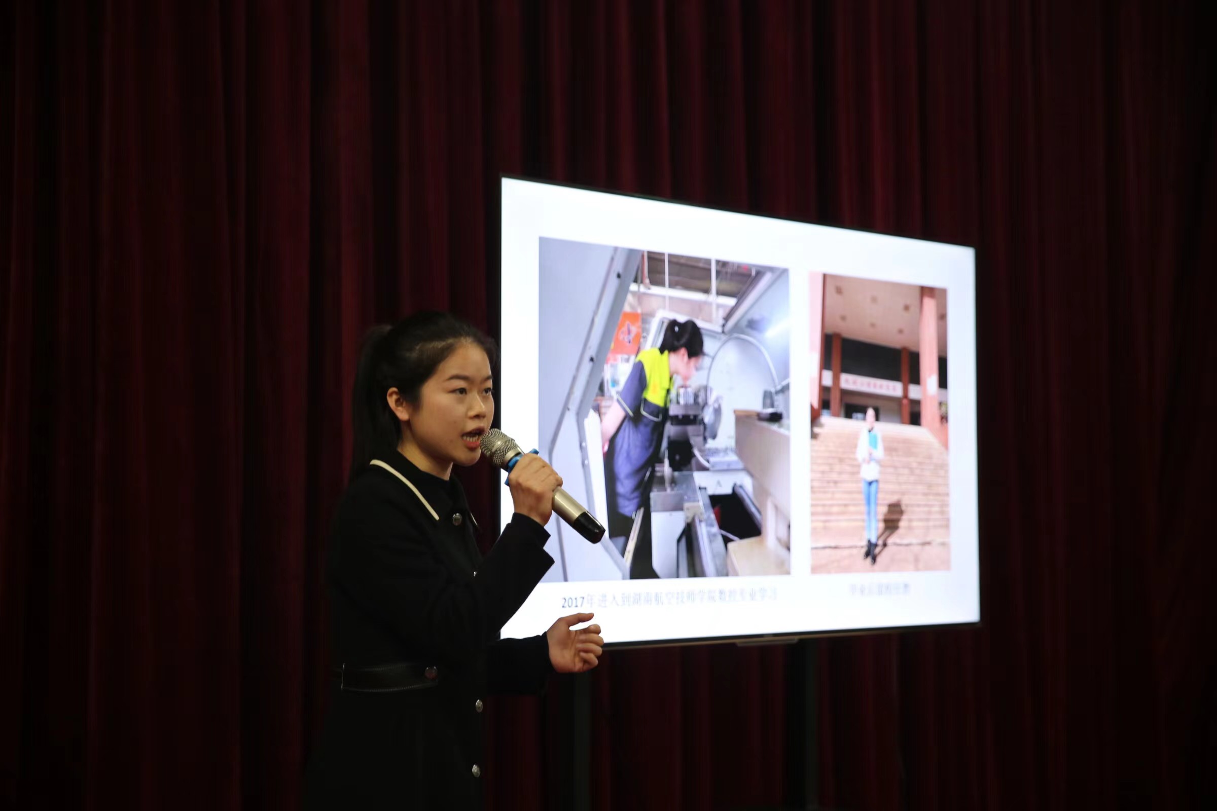 “全国技术能手”、第二届全国职业技能大赛铜牌、湖南省第一届职业技能大赛金牌获得者、湖南航空技师米兰买球青年教师罗淑芬以《选择》为题,分享了她从一名怀揣梦想苦练技能的学生成长为帮助学生实现技能梦想老师的成长历程,激励所有学生努力学习本领通过掌握一技之长实现人生价值和技能梦想。