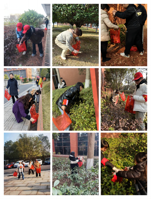 老师们与学生干部结成小组,拿起清扫工具,在分配的责任区清理卫生死角,或是捡拾散落在绿化带中的塑料袋,或是认真地扫起树叶、或是俯身捡起路边的垃圾……,校园里活跃着大家劳动的忙碌身影,在大家的共同努力下,校园环境更加整洁美观。