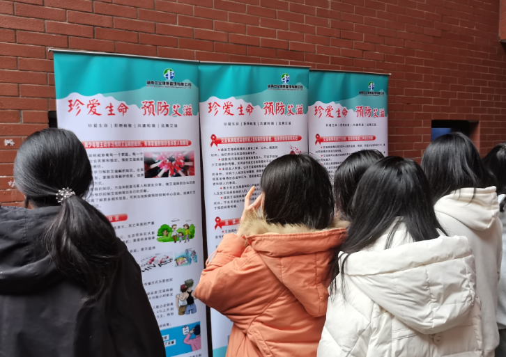 市疾控中心性艾科陈科长向同学们介绍了艾滋病的影响、危害、症状、相关特征、传播途径等,向同学们讲解艾滋病的预防措施、治疗方法,列举展示了一些艾滋病宣传案例和视频,希望同学们自律自爱,远离艾滋病。最后,市疾控中心在活动现场安排HIV病毒抗体免费自动检测和咨询。