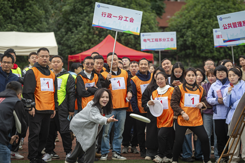 趣味运动会共有运转乾坤、飞盘打靶、无敌风火轮和滚雪球四个比赛项目,随着裁判的一声哨响,11支分工会队伍开始了激烈的较量。在这一刻,老师们不仅是同事,更是并肩作战的战友。寒风中的他们,用蓬勃的朝气与激情书写着坚持与拼搏。老师们每一次传递都充满了默契与信任,他们的身影在操场上划过一道道优美的弧线。