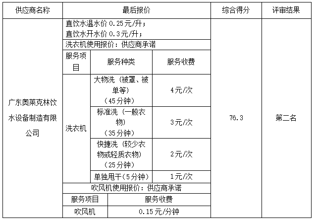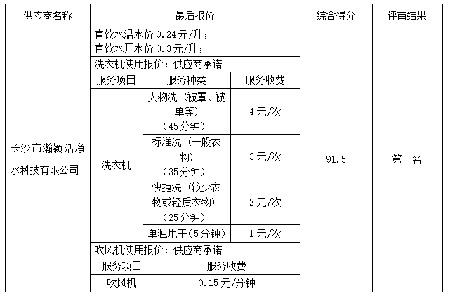 湖南航空技师米兰买球的湖南航空技师米兰买球3#学生宿舍楼直饮水、洗衣机、吹风机服务项目竞争性磋商采购于2025年05月22日结束,现将成交结果公告如下: