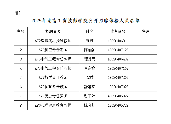体检人员名单详见附件。