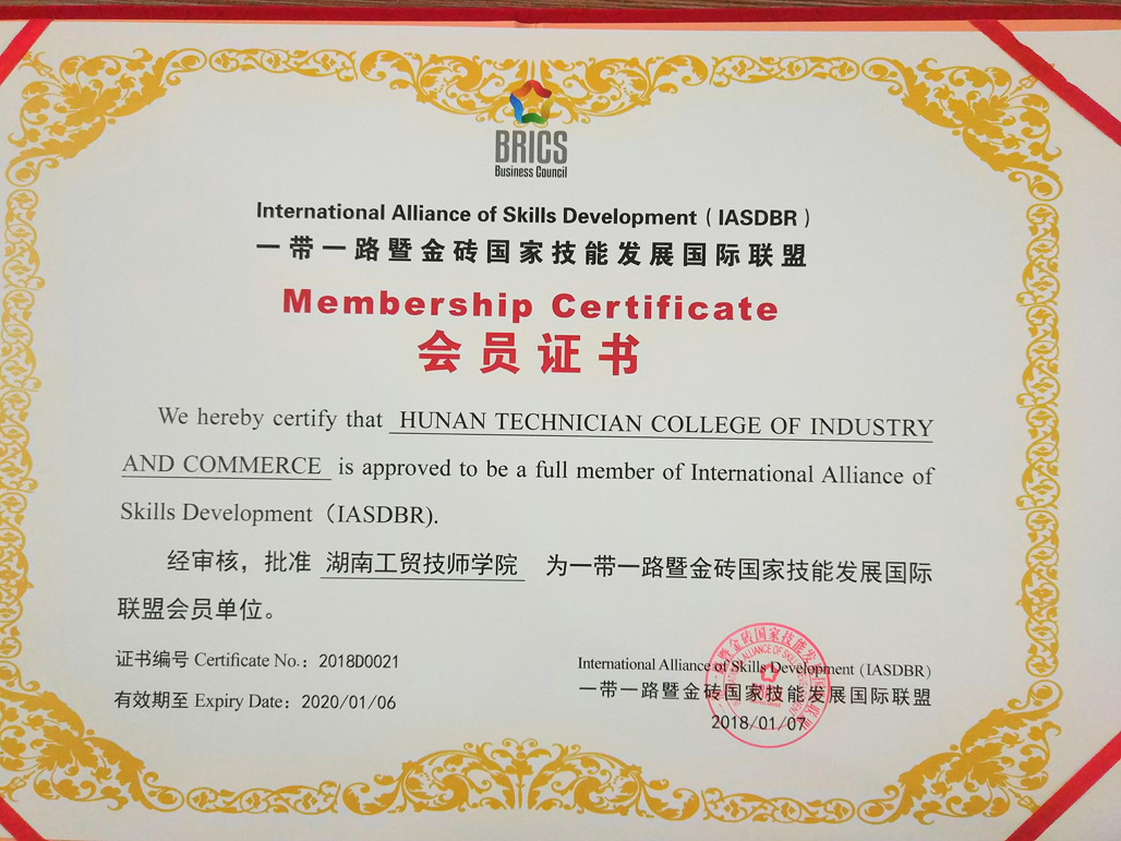 一带一路暨金砖国家技能发展国际联盟证书