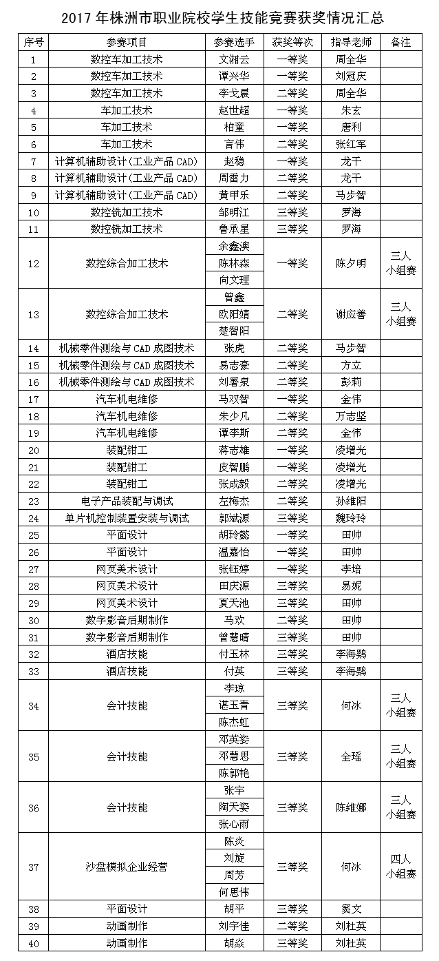 ——我院参加2017年株洲市职业院校学生技能竞赛成绩斐然
